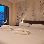 The property has a balcony, a living room, and a fully equipped kitchen, and comforts such as an air conditioner and a washing machine. The apartment is equipped with a bathroom that features dryers and towels.